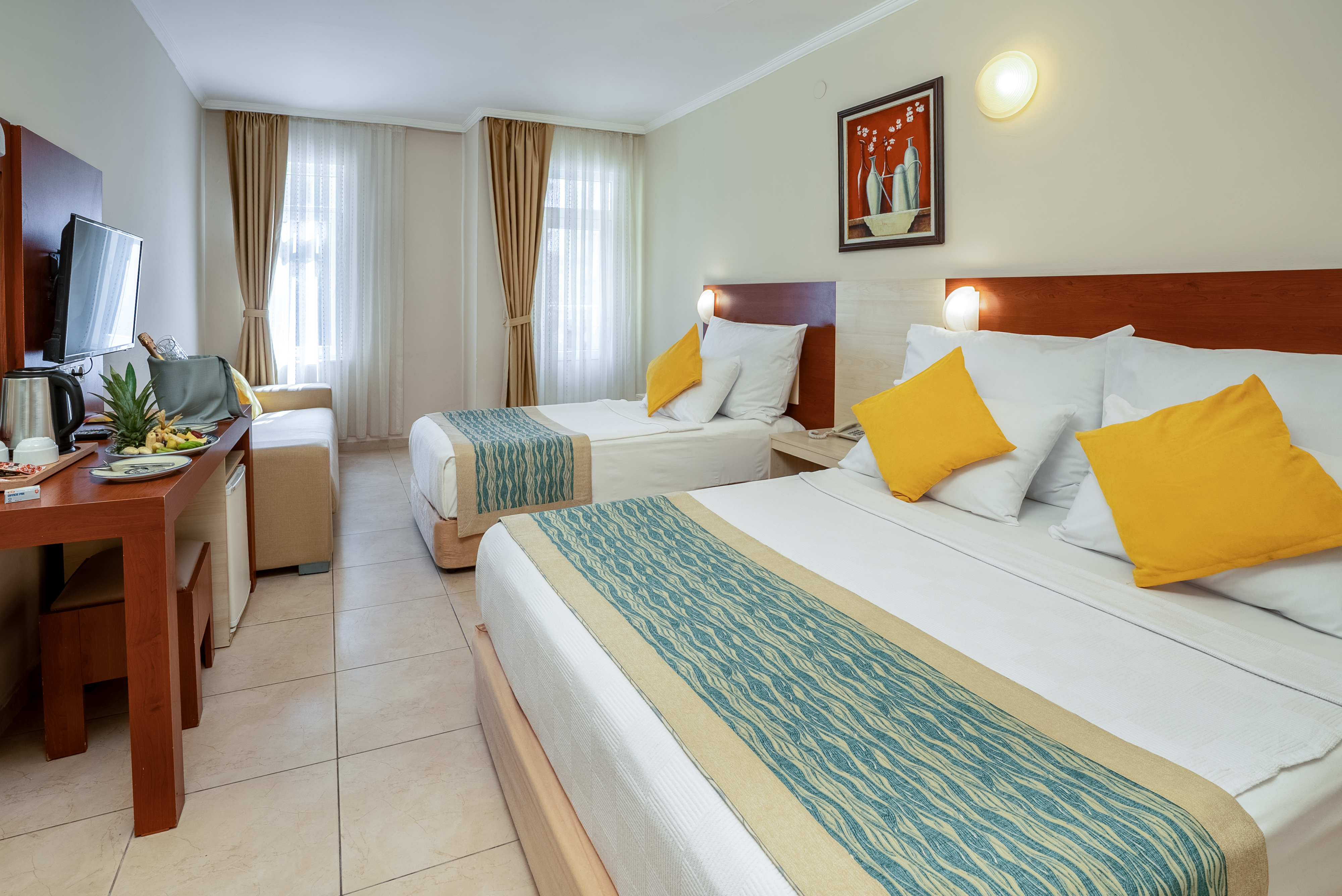 Kvalitní hotel s pohodlnými pokoji a vynikající kuchyní. Díky zázemí, které hotel nabízí, i nedalekému centru Alanye s širokou nabídkou atrakcí je ideální pro páry i rodiny s dětmi.