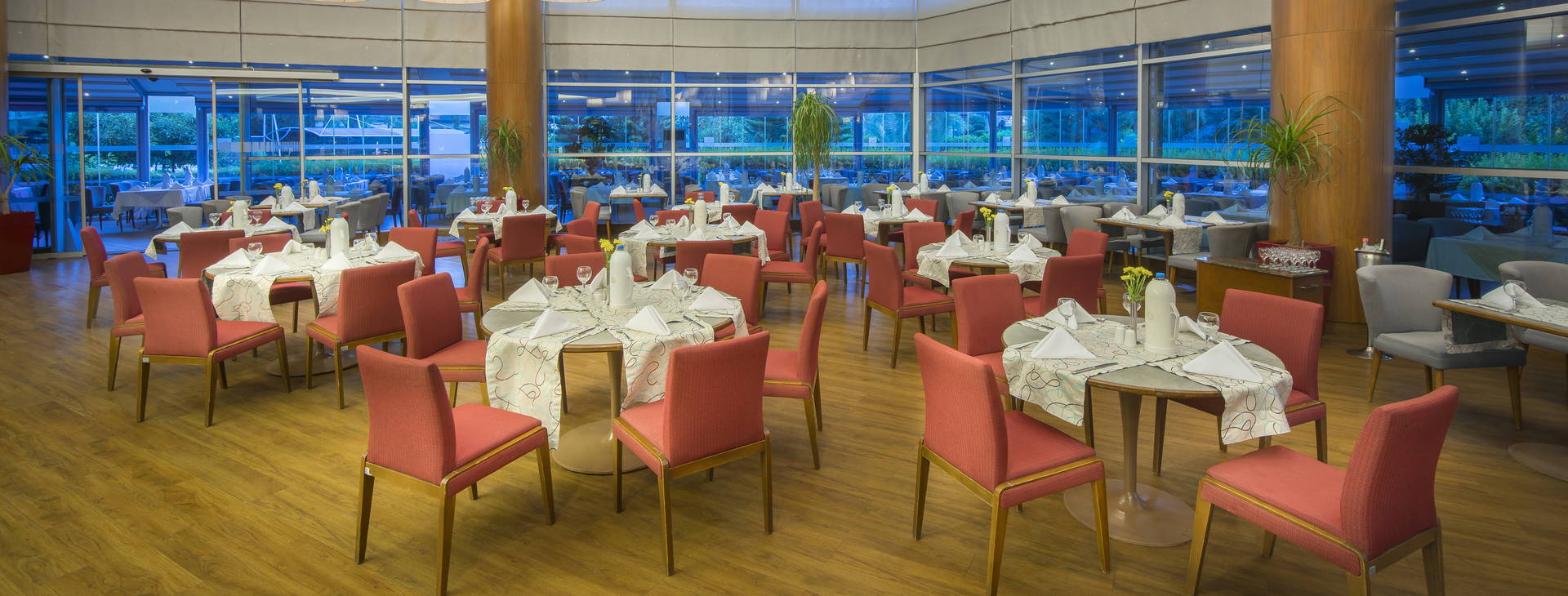 All Inclusive: snídaně (07:00-10:00), pozdní snídaně (10:00-11:00), oběd (12:30-14:30) a večeře (18:30-21:00) v hlavní restauraci formou bufetu. Pozdní svačina (24:00-01:30), občerstvení a'la carte (14:00-16:00), občerstvení: hamburgery, sushi. Dorty, zákusky, sendviče (16:30-17:30). Cukrárna (9:00-23:00), zmrzlina (11:00-23:00). Místní nealkoholické a alkoholické nápoje a některé importované nápoje k dispozici 24 hodin denně ve vybraném baru, v ostatních barech během otevírací doby. Za příplatek: některé dovážené alkoholické a nealkoholické nápoje.