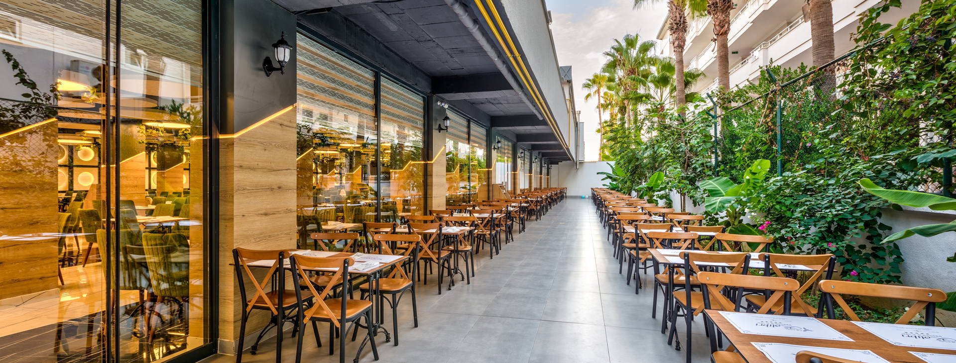 Ultra All Inclusive: snídaně (07:00-09:00), pozdní snídaně (09:00-10:00), oběd (12:30-14:30) a večeře (19:00-21:00) formou bufetu. Během dne občerstvení (12:30-16:00), zmrzlina (15:00-17:00), káva a zákusky, noční občerstvení (22:00-07:00). Místní nealkoholické a alkoholické nápoje k dispozici 24 h ve vybraném baru. Za příplatek: další dovážené nealkoholické a alkoholické nápoje a čerstvé ovocné šťávy.