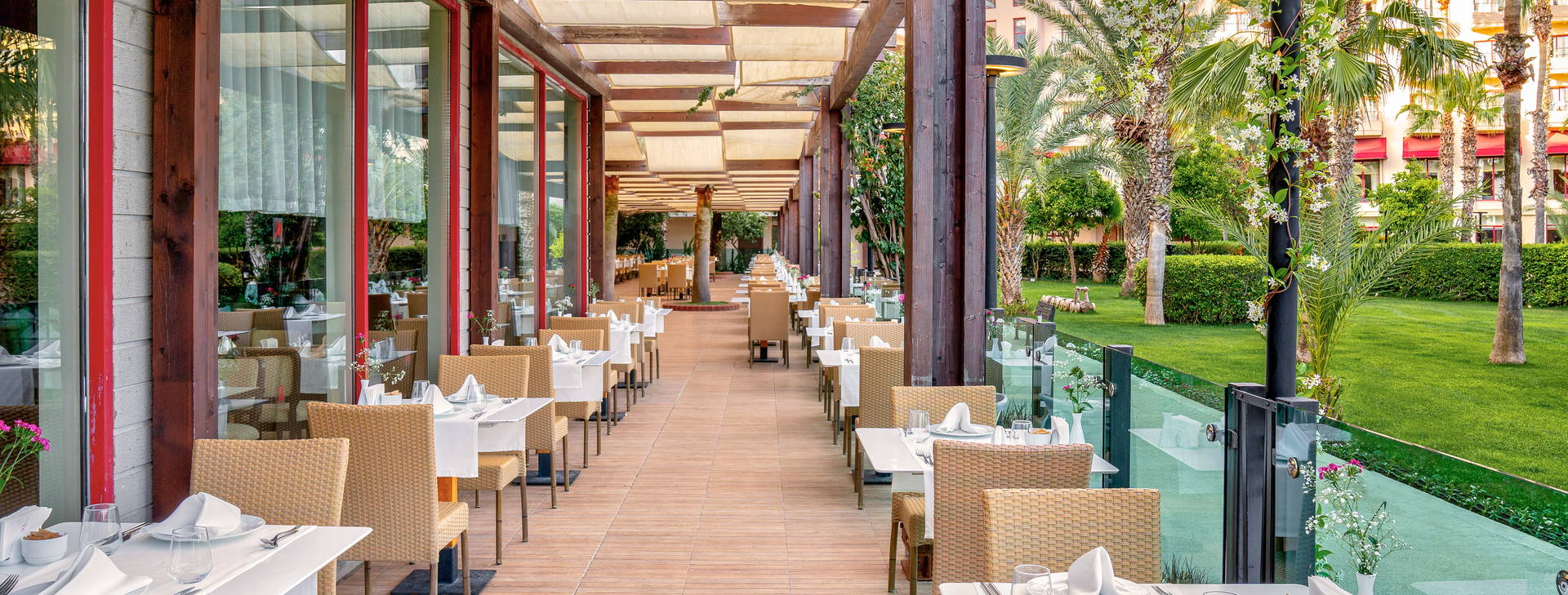 Složení Ultra All Inclusive: stravování formou bufetu - snídaně (07:00-10:00), pozdní snídaně (10:00-11:00), oběd (12:30-14:30), večeře (18:30-21:30) v hlavní restauraci; občerstvení - v plážovém baru (11:00-15:30), oběd (12:30-15:30), káva (16:00-17:00), noční bufet v lobby (23:00-07:00). Místní alkoholické a nealkoholické nápoje v lobby baru 24 hod. Za příplatek: některé importované nápoje.