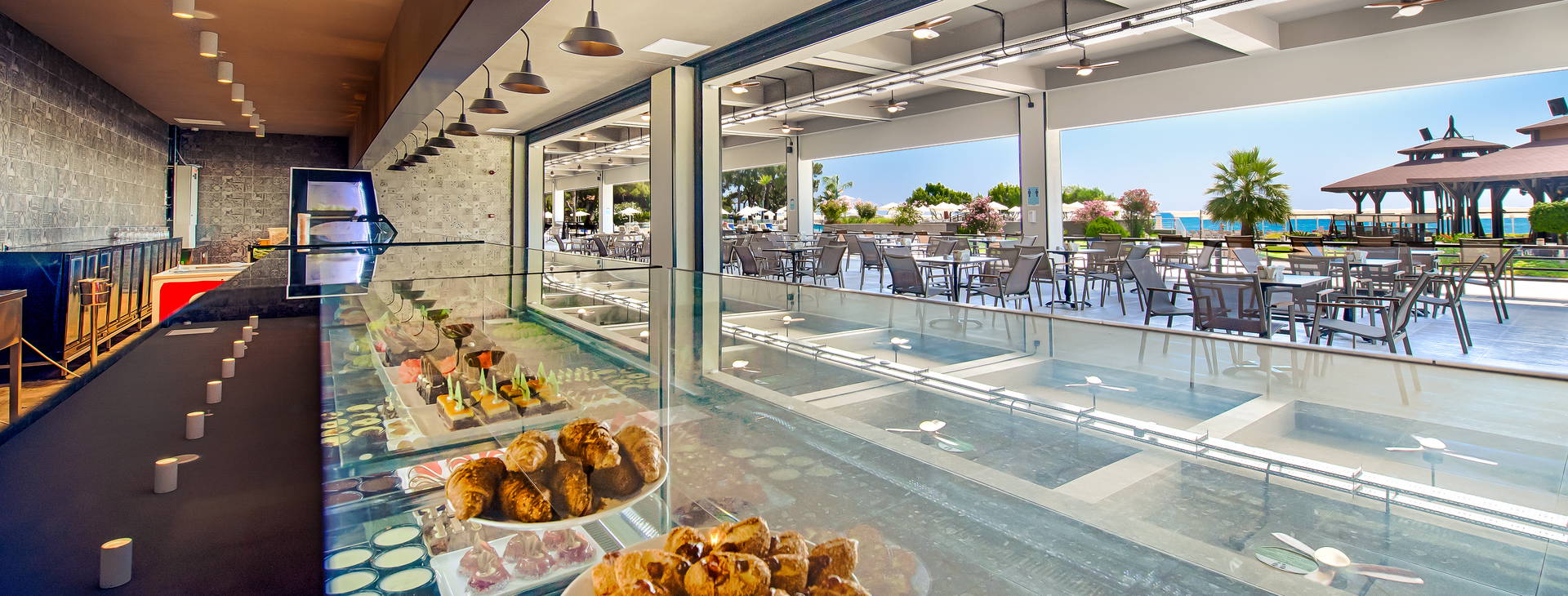 Ultra All Inclusive: snídaně (07:00-10:00), pozdní snídaně (10:00-11:00), oběd (12:30-14:00), večeře (19:00-21:00), pozdní večeře (24:00-06:00):00) jako bohatý bufet v hlavní restauraci, široký výběr občerstvení ve Food Courtu (11:00-18:00), tradiční turecká pochoutka gözleme (11:00-16:00), dezerty (11:00-24:00), zmrzlina (12:00-18:00). Nealkoholické nápoje, místní lihoviny a vybrané dovážené lihoviny jsou k dispozici 24 hodin denně ve vybraném baru.