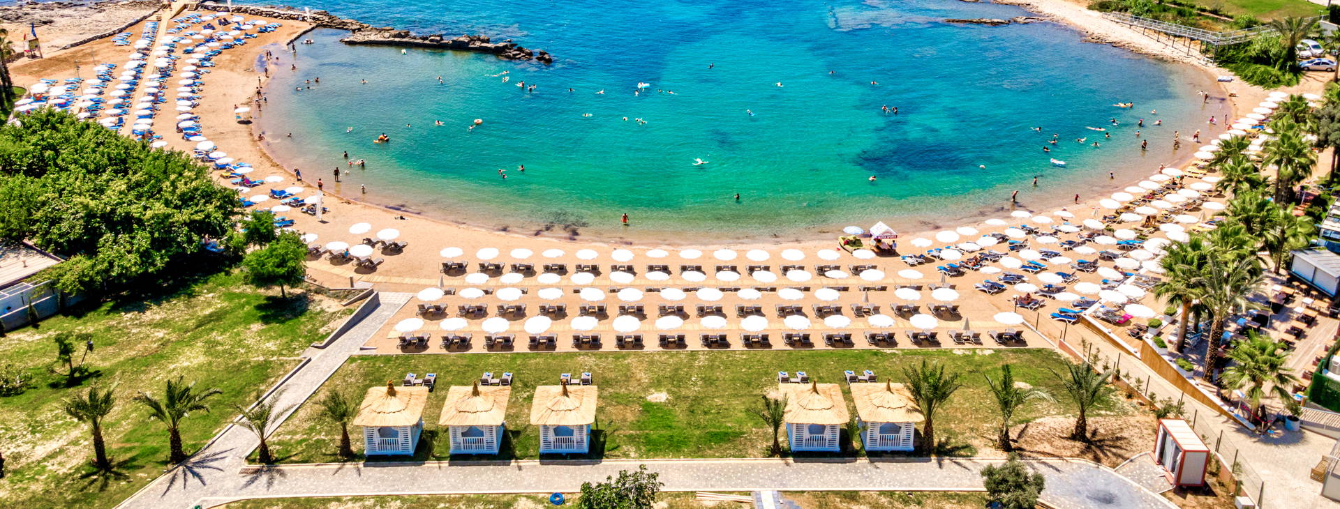 Soukromá písečná pláž s pozvolným sestupem do moře. Plážové osušky, slunečníky a lehátka jsou k dispozici zdarma. V zahradě u pláže jsou za příplatek altánky.