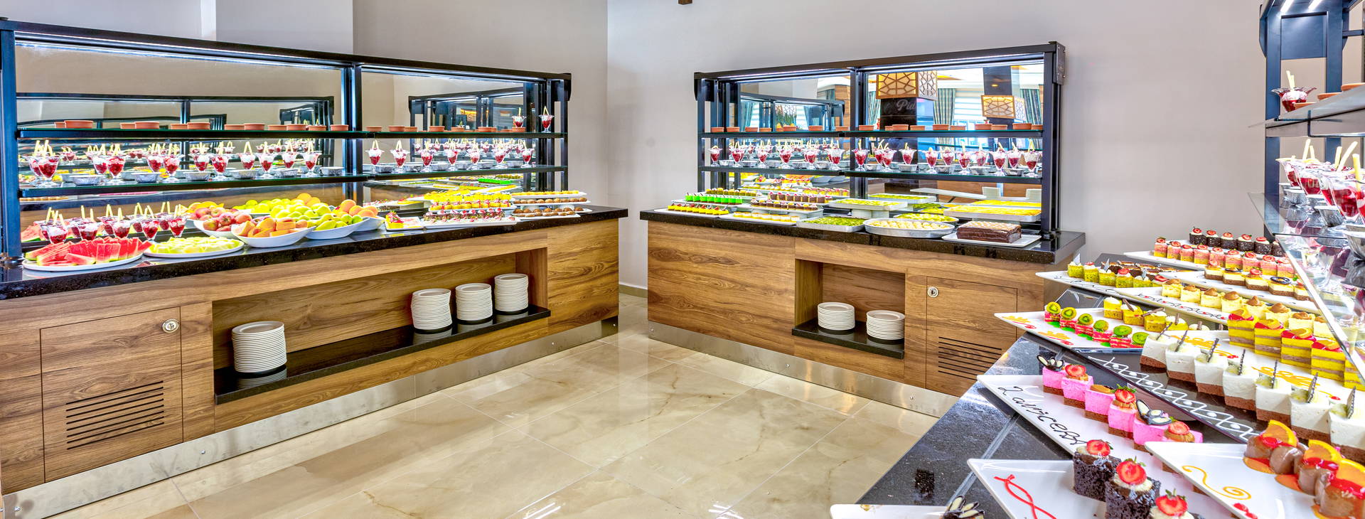 Ultra All Inclusive: snídaně (07:00-10:30), oběd (12:30-14:30), večeře (19:00-21:00) formou bohatého bufetu, tradiční turecká pochoutka - palačinky gözleme (10:30-16:00), občerstvení (10:30-16:00), sladkosti (10:00-18:00), noční bufet (00:00-07:00). Místní lihoviny a některé dovážené alkoholické a nealkoholické nápoje jsou k dispozici v určených barech v areálu hotelu mezi 10:00-01:00. Za poplatek: ostatní dovážené nápoje.