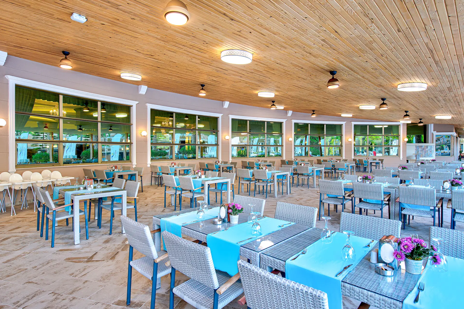 Ultra All Inclusive: snídaně (07:30-10:30), oběd (12:30-14:00), večeře (19:00-21:00) formou bohatého bufetu, občerstvení během dne (11:00-16:00), gozleme (09:00-16:00), zmrzlina (15:00-17:00), káva, čaj a sladké občerstvení (14:00-19:00), noční svačina (23:00-06:00). Místní nealkoholické a alkoholické nápoje k dispozici v určených barech (10:00-02:00). Za příplatek: čerstvě vymačkané džusy, šampaňské, dovážené alkoholické nápoje a nápoje v lahvích.