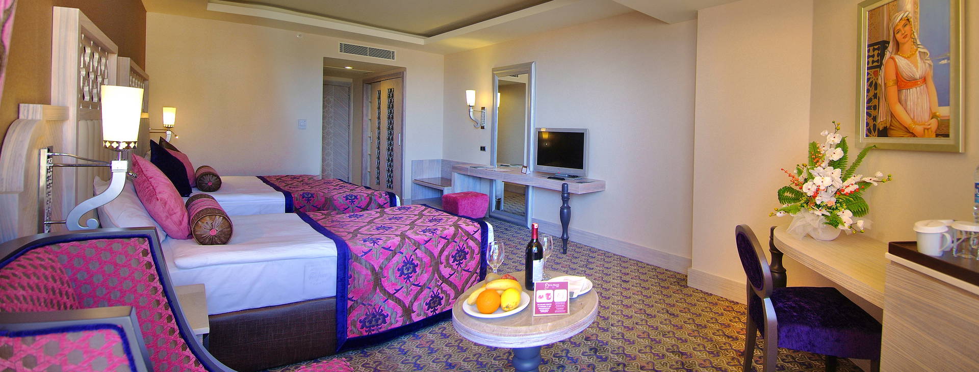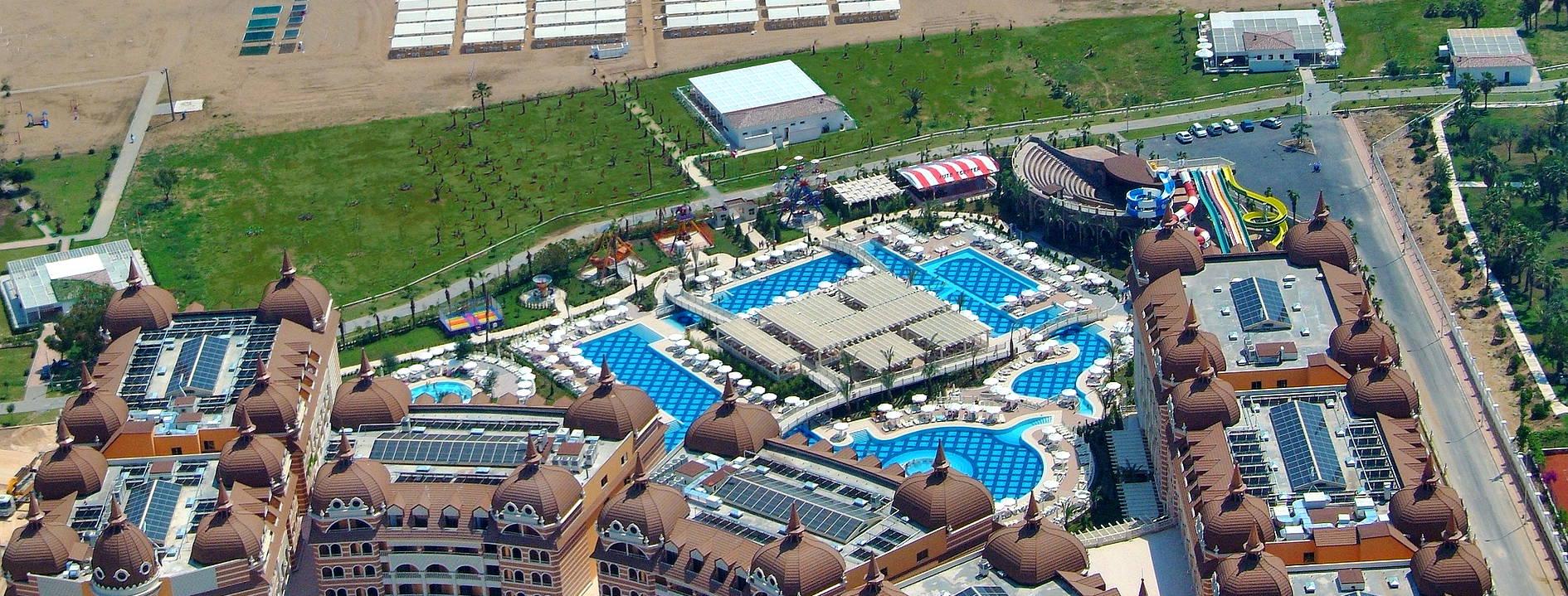 .24hodinová recepce, hlavní restaurace, 5 restaurací a'la carte: turecká, italská, rybí, mexická a čínská (každá za poplatek cca 10 EUR/osoba, nutná rezervace), 7 různých barů, včetně: lobby baru, baru u bazénu, disko baru, baru na pláži. 6 bazénů (4 venkovní a 2 vnitřní): 1 velmi velký bazén nepravidelného tvaru, bazén s 5 skluzavkami (otevřen v určitou dobu), brouzdaliště, dětský bazén se 3 skluzavkami, lunapark zdarma (pro děti starší 7 let, pro mladší děti - nutný písemný souhlas rodičů), dětské hřiště. Za poplatek: pokojová služba, hlídání dětí (nutná předchozí rezervace), kadeřnictví, obchody, půjčovna aut, prádelna, fotograf.