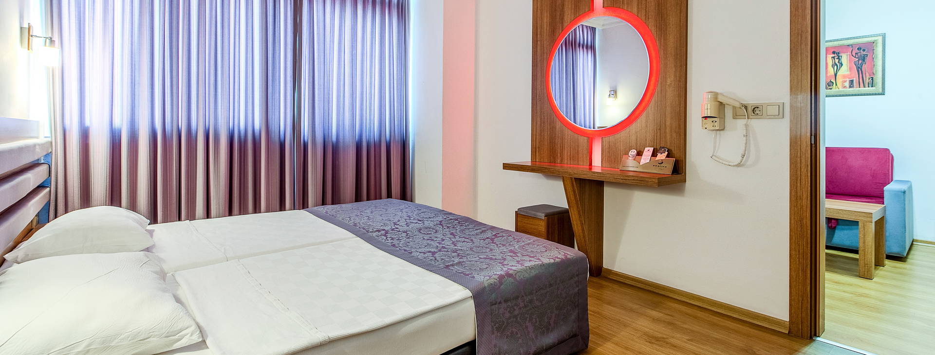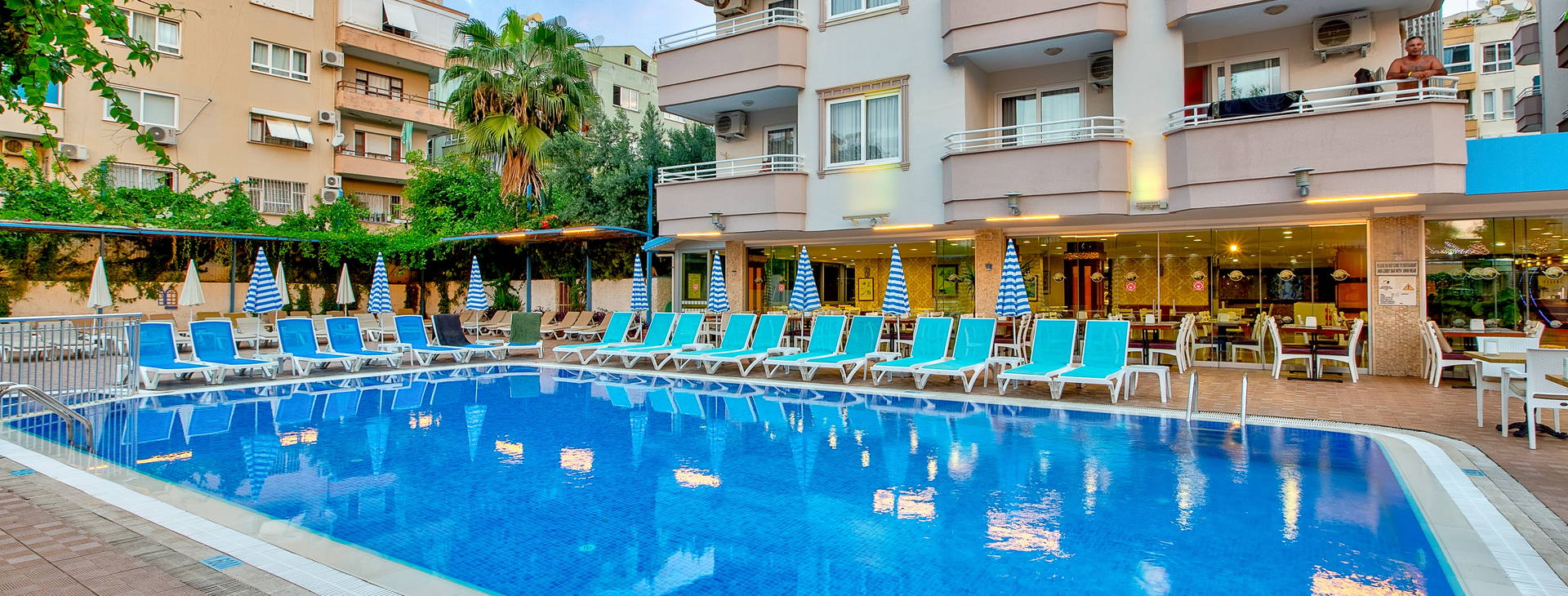 Hotel doporučujeme zejména těm, kteří si chtějí odpočinout v centru Alanye. Blízkost zábavních podniků, jako jsou bary, restaurace, obchody a krásná Kleopatřina pláž v docházkové vzdálenosti, z něj činí ideální místo pro ty, kteří chtějí na dovolené zažít pravé turecké dobrodružství. Největší výhodou, kromě polohy, jsou velmi prostorné rodinné pokoje. Vřele doporučujeme.