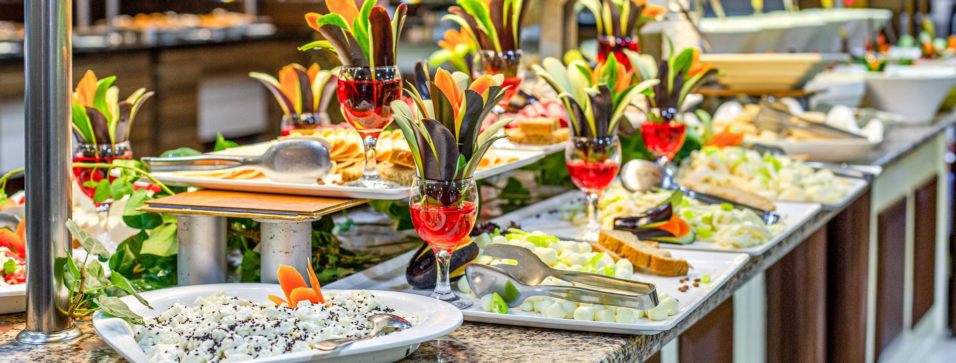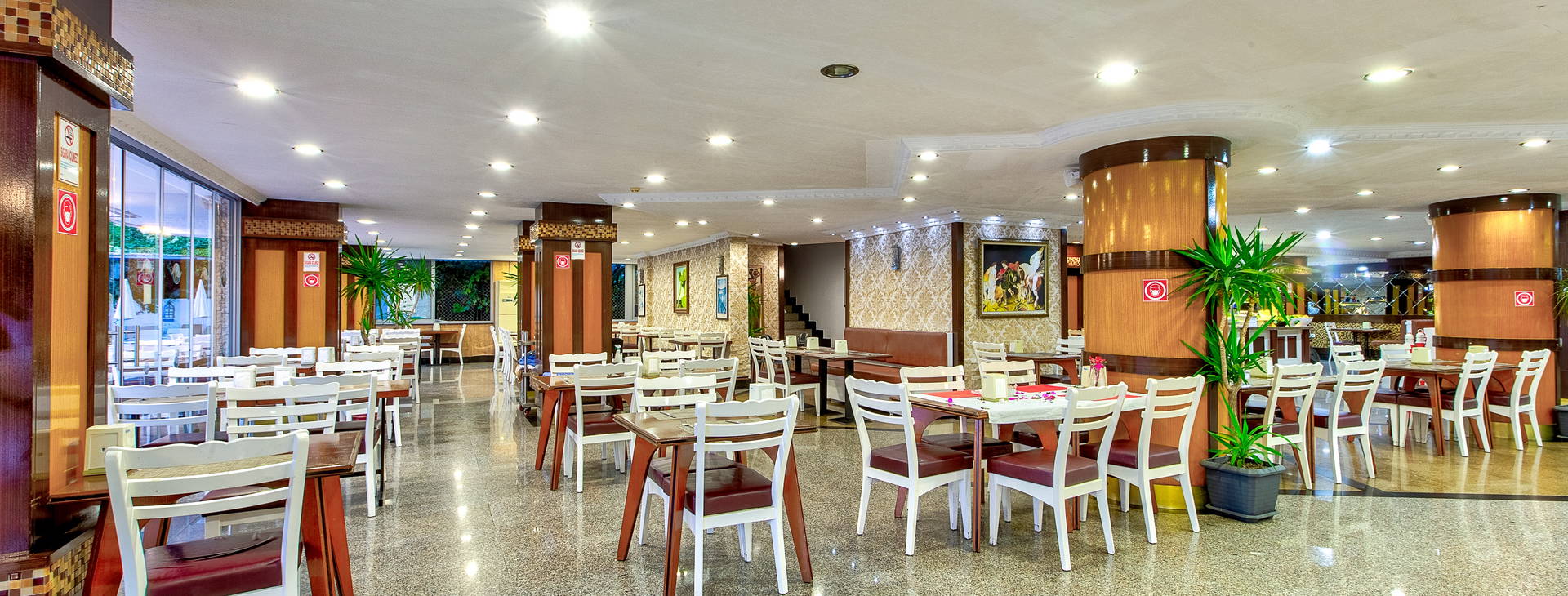 All Inclusive: snídaně (08:00-10:00), oběd (12:30-14:00), večeře (19:00-21:00) formou bufetu v hlavní restauraci, káva, čaj, zákusek (16:00-17:00), noční polévka (23:00-24:00). Nealkoholické nápoje a místní alkoholické nápoje (10:00-23:00). Za příplatek: čerstvě vymačkané džusy, konzumace po 23:00, turecká káva.