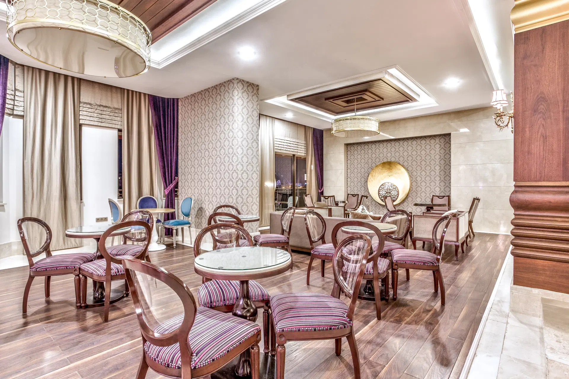 Hodinová recepce, výtah, prostorná vstupní hala, hlavní restaurace, 3 restaurace a'la carte (s osmanskou a tureckou kuchyní, italskou kuchyní a rybami a mořskými plody), 7 barů včetně baru na pláži, u bazénu a ve vstupní hale, hlavní bazén, poloolympijský bazén, bazén se skluzavkami (otevřený v určitých časech), krytý bazén a dětské venkovní a kryté brouzdaliště. Za příplatek je k dispozici kadeřnictví a obchody.