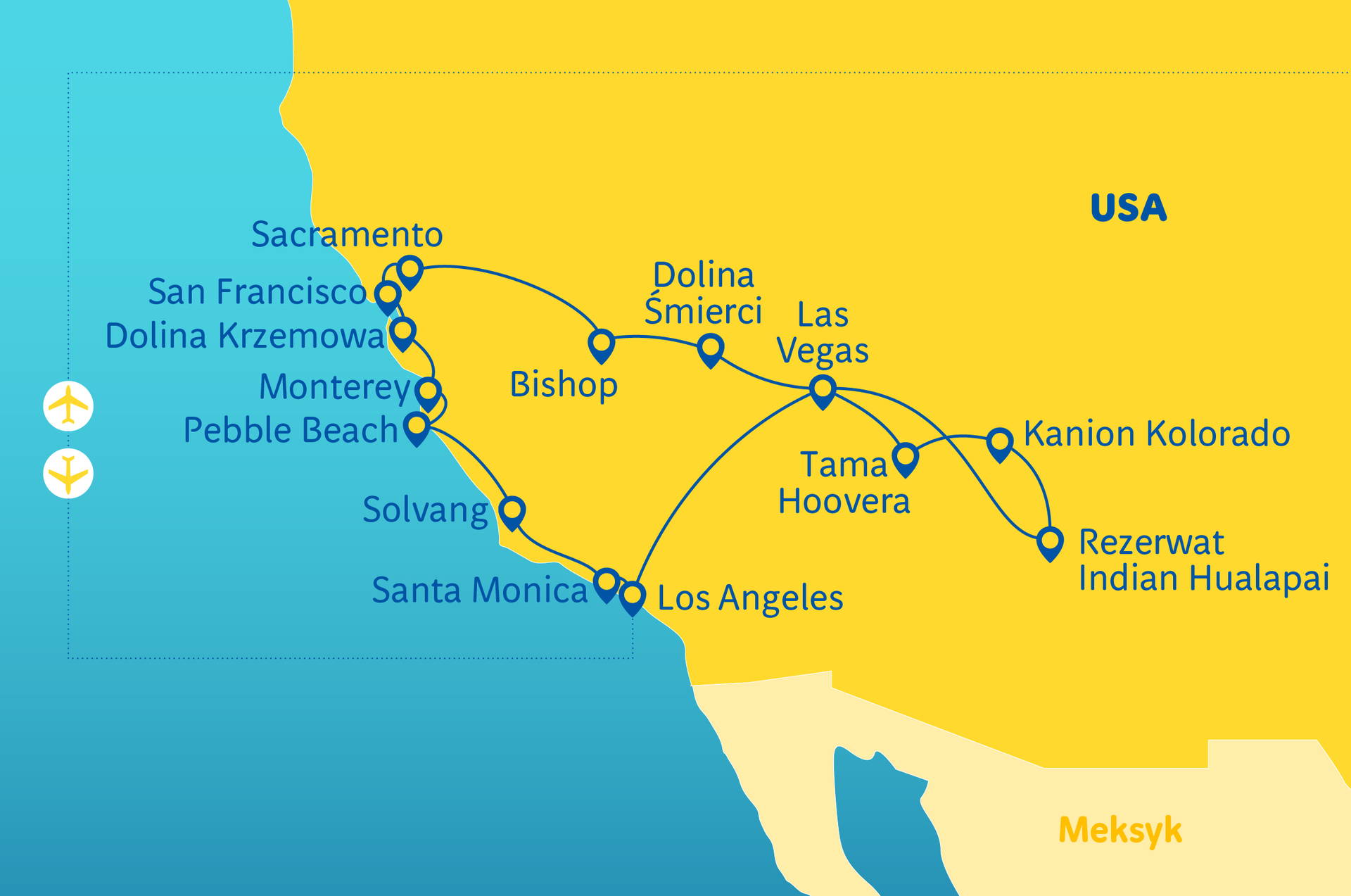 Název zájezdu v polském jazyce: USA - California Dreams