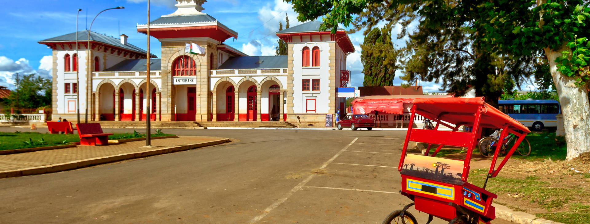 Po časné snídani přejezd do Antsirabe, které je známé jako nejchladnější místo Madagaskaru. Díky termálním vodám, které se zde nacházejí, se mu říká madagaskarské Vichy. Prohlédneme si Sloup nezávislosti, koloniální nádraží, odkud kdysi vyjížděl slavný michelinský vynález viko-viko (kříženec autobusu a vlaku). Díky velkému počtu a rozmanitosti rikš je také známé jako madagaskarské hlavní město rikš. Během prohlídky se nabízí možnost svézt se na slavné "kočičce", rikše tažené mužem (příplatek se platí přímo řidiči rikši). Večeře a přenocování v hotelu v okolí Antananariva. (Trasa cca 400 km).