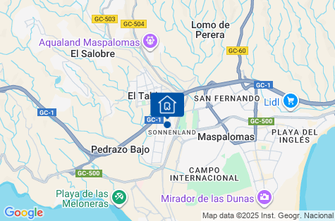 Komplex bungalovů se nachází ve čtvrti Maspalomas - Sonnenland, přibližně 5 km od centra města. V jeho blízkosti se nachází autobusová zastávka, obchody, bary a restaurace. Maspalomas je nejstarší turistické letovisko na Gran Canarii, které se nachází na jihu ostrova. Je známé především díky svým krásným plážím a dunám chráněným v rezervaci Dunas de Maspalomas. Transfer z letiště trvá přibližně 45 minut.