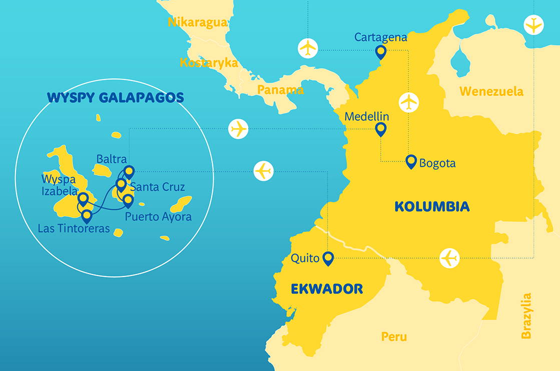 Barevná Cartagena de Indias - moderní Medellín - Quito - koloniální klenot v Andách (2850 m) - sopka Cotopaxi - slavné Galapágy - ostrov Isabella - tučňáci Galapago - Bogota - odpočinek u Karibského moře