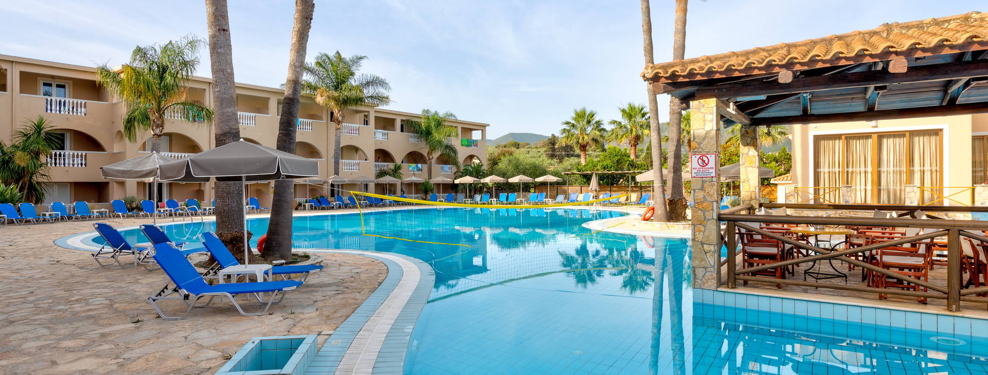 Hotel se nachází v překrásné lokalitě, obklopen zelení, krásnými horami a jónským mořem. Zante Village je řadu let jedním z nejčastěji vybíraných hotelů. Je skvělým místem pro rodiny s dětmi, ideální k nerušenému odpočinku a cenově velmi atraktivní.