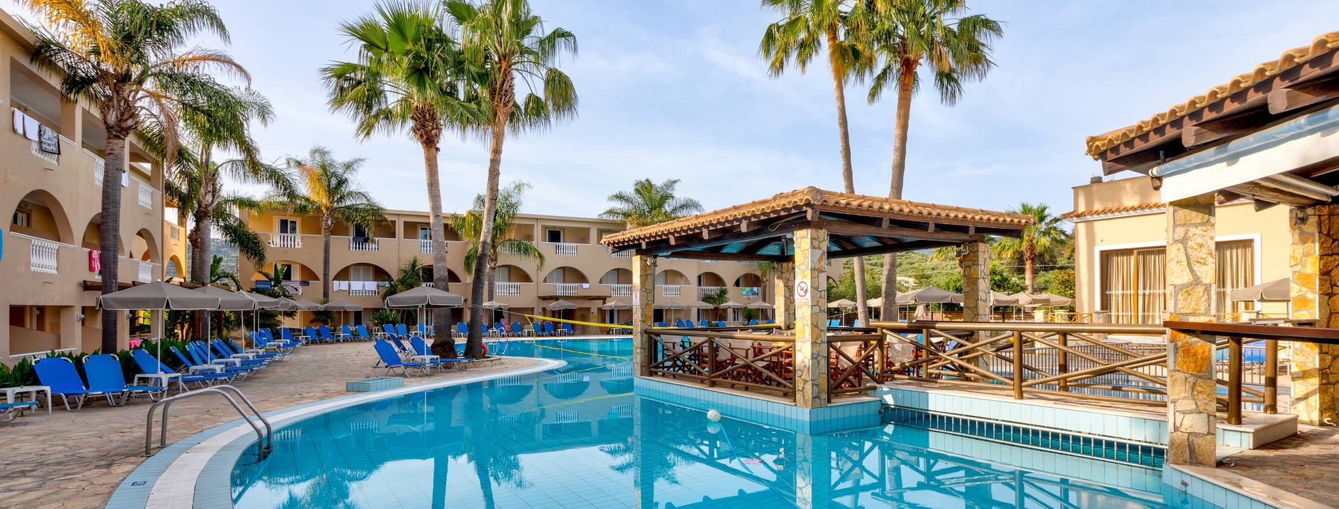 Hotel Zante Village se nachází v klidném letovisku Alykanas plném zeleně, cca 400 m od jeho centra. Nejbližší autobusová zastávka se nachází cca 250 m od hotelu, letiště je vzdáleno 17 km.