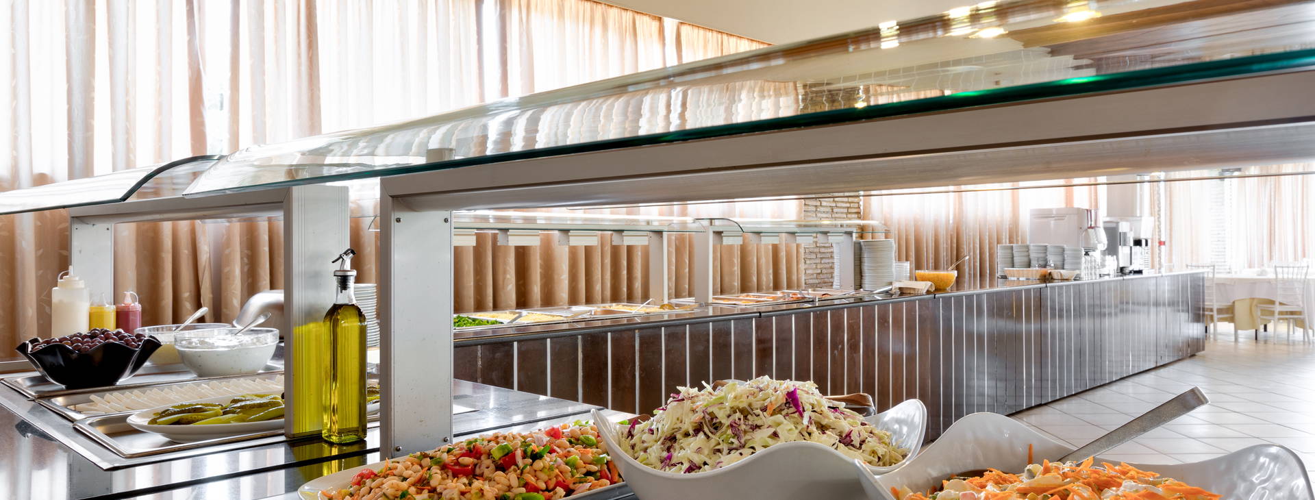 All Inclusive formou bufetu: snídaně (8:00-10:00), obědě (13:00-14:30), večeře (19:00-21:00). Navíc je během dne servírováno občerstvení (11:00-12:00 a 15:30-16:30), zmrzlina (12:30-15:30). Místní alkoholické a nealkoholické nápoje: pivo, víno, ouzo, brandy, káva, čaj, džusy, bublinkové nápoje (10:00-23:30).