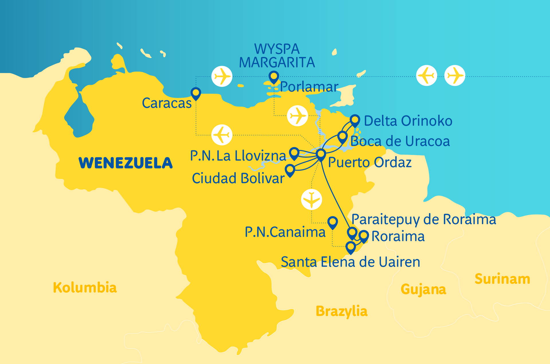 Po snídani transfer na letiště Porlamar a přelet do Puerto Ordaz, města ležícího na soutoku dvou řek Caroni a Orinoko, které spolu s nedalekým San Felixem tvoří větší metropoli: Ciudad Guayana. Poté se projdeme mezi exotickou vegetací parku La Llovizna. Z mnoha vyhlídkových míst budeme pozorovat zdejší impozantní vodopády. Pokud budeme mít štěstí, potkáme také ptáky a opice různých druhů. Přestávka na oběd (za příplatek, cca 15 USD/osoba, nápoje navíc). Pro zájemce nabízíme výlet do nedalekého přírodního parku Cachamay (cena cca 95 USD/os.), kde navštívíme místo, kde se stékají dvě řeky: Orinoko a Caroni. Zde zažijeme neobvyklý pohled na dvě řeky tekoucí v jednom korytě, které se však vzájemně neslévají. Poté poplujeme až ke kaskádám parku La Llovizna, kde si užijeme koupání ve vodní mlze vodopádů. Plavba vyvrcholí návštěvou jedné z mnoha osamělých pláží na řece Caroni spojenou s koupáním v řece. Během prohlídky se podávají chlazené nápoje a místní pivo a rum. Přejezd do hotelu, ubytování, večeře a nocleh.